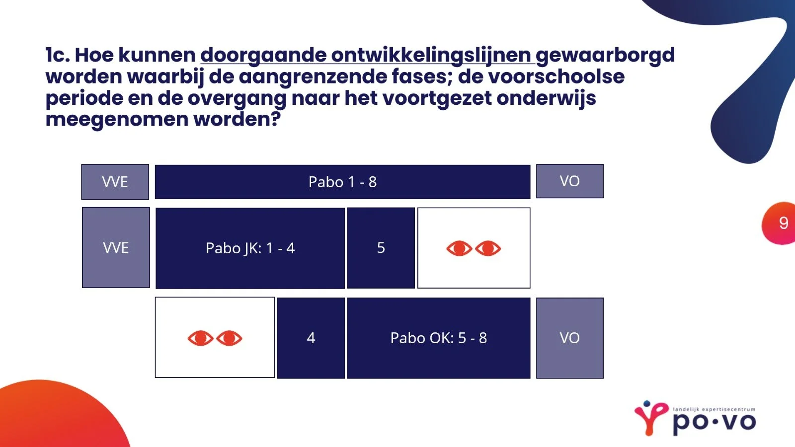 Na een jaar bezig te zijn met het overkoepelend onderzoek, zijn vele praktijken in beeld gebracht. Deze variatie geeft al aan, hoeveel er mogelijk is binnen het huidige bestel om kansen te optimaliseren voor kinderen. Daarbij is er op de site ook aandacht voor de verbindingsplannen po-vo, die door het ministerie zelf zijn verzameld (zie hieronder). Na deze introductie gingen onderzoekers Vera de Wit en Henderien Steenbeek dieper in op de koers die zij nu willen kiezen voor het vervolg van dit onderzoek. Ze zijn van plan om interviews met po-leerlingen en hun ouders te doen. Hierbij ligt de focus op